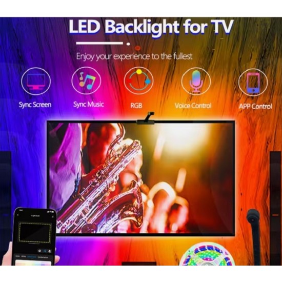 تجربه مشاهده غوطه وری: نور پس زمینه LED RGBIC با دوربین 1080P رنگ تصویر را گرفته و آن را با نور پس زمینه تلویزیون همگام می کند. نورهای رنگی در تصاویر می توانند به سرعت نشان داده شوند و آنچه را که تماشا می کنید منعکس می کنند و تجربه سرگرمی خانگی شما را به حداکثر می رساند.